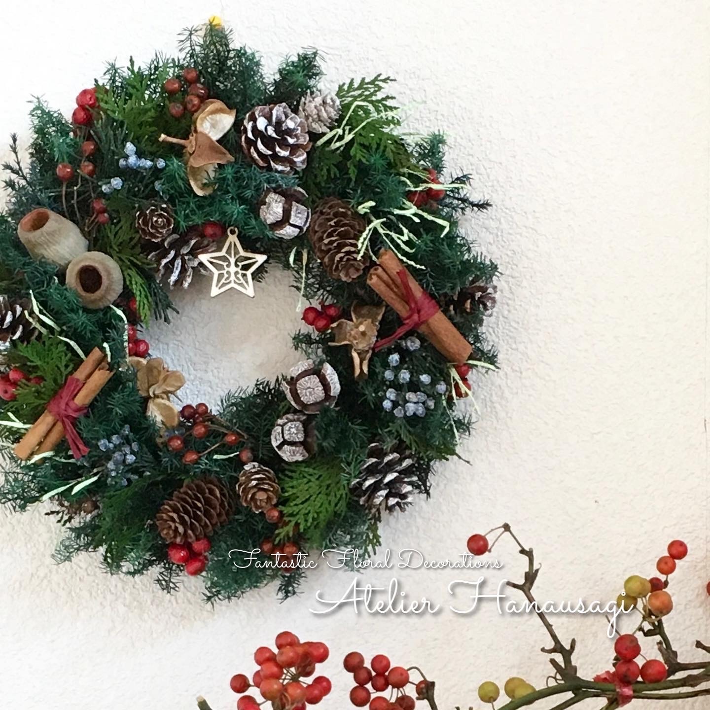クリスマスリース 星まで全て本物素材でお作りしています。 | アトリエ花うさぎ